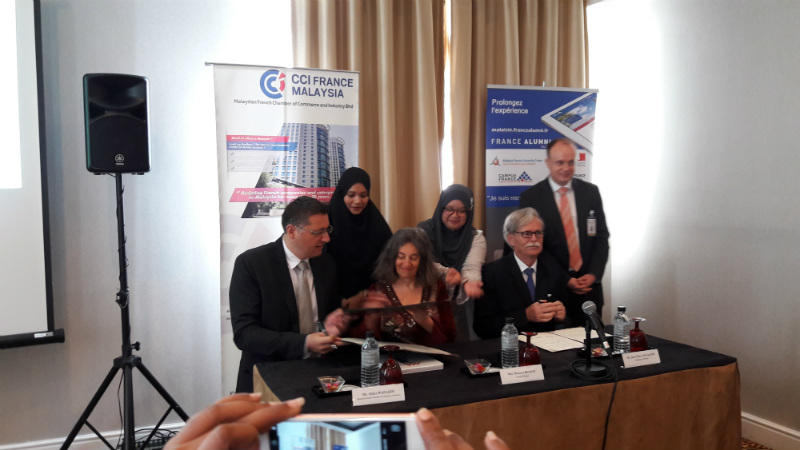 During the visit of the French President in Malaysia, Béatrice Khaiat, General Director of Campus France, has concluded a joint management agreement protocol for France Alumni Malaysia of the France Alumni Malaysia network with Gilles Waeldin, Head of the French-Indonesian Chamber of Commerce and Industry, and Jean-Pierre Galland, Counsellor for Cultural Cooperation and Action in the French embassy in Malaysia.